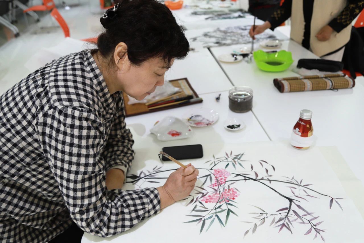 以書香潤心,以書香賦能,筆會現(xiàn)場,伴隨著古樸悠揚的樂曲,墨香陣陣飄,書畫家們競相揮毫潑墨,精心創(chuàng)作,以書畫為媒,搭建起一個文化與藝術(shù)相融合的平臺,大家談書論畫,切磋交流,潑墨揮毫、點染丹青,一幅幅書畫作品或秀美遒勁,或瀟灑飄逸,作品題材廣泛,形式多樣,其一筆一畫、一景一物都把各自對中國優(yōu)秀傳統(tǒng)文化的感悟和歡度九九重陽的喜悅之情注入筆端,浸潤著對生活極向上的追求和美好未來的向往。在短短的兩個小時里,一幅幅妙趣匠心、寓意深遠、渾然天成的書畫佳作躍然紙上,向第十屆南京中老年文化藝術(shù)節(jié)獻上獨特的禮物。