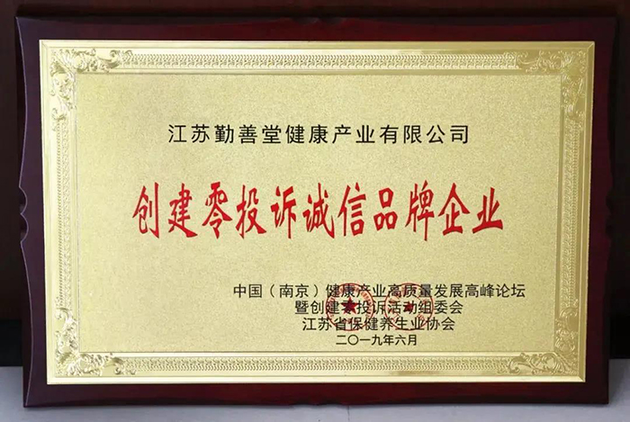 勤善堂積極參與到“零投訴”誠(chéng)信品牌企業(yè)的創(chuàng)建中,并做出莊嚴(yán)承諾,獲得了“創(chuàng)建零投訴誠(chéng)信優(yōu)質(zhì)品牌企業(yè)”稱號(hào)。
